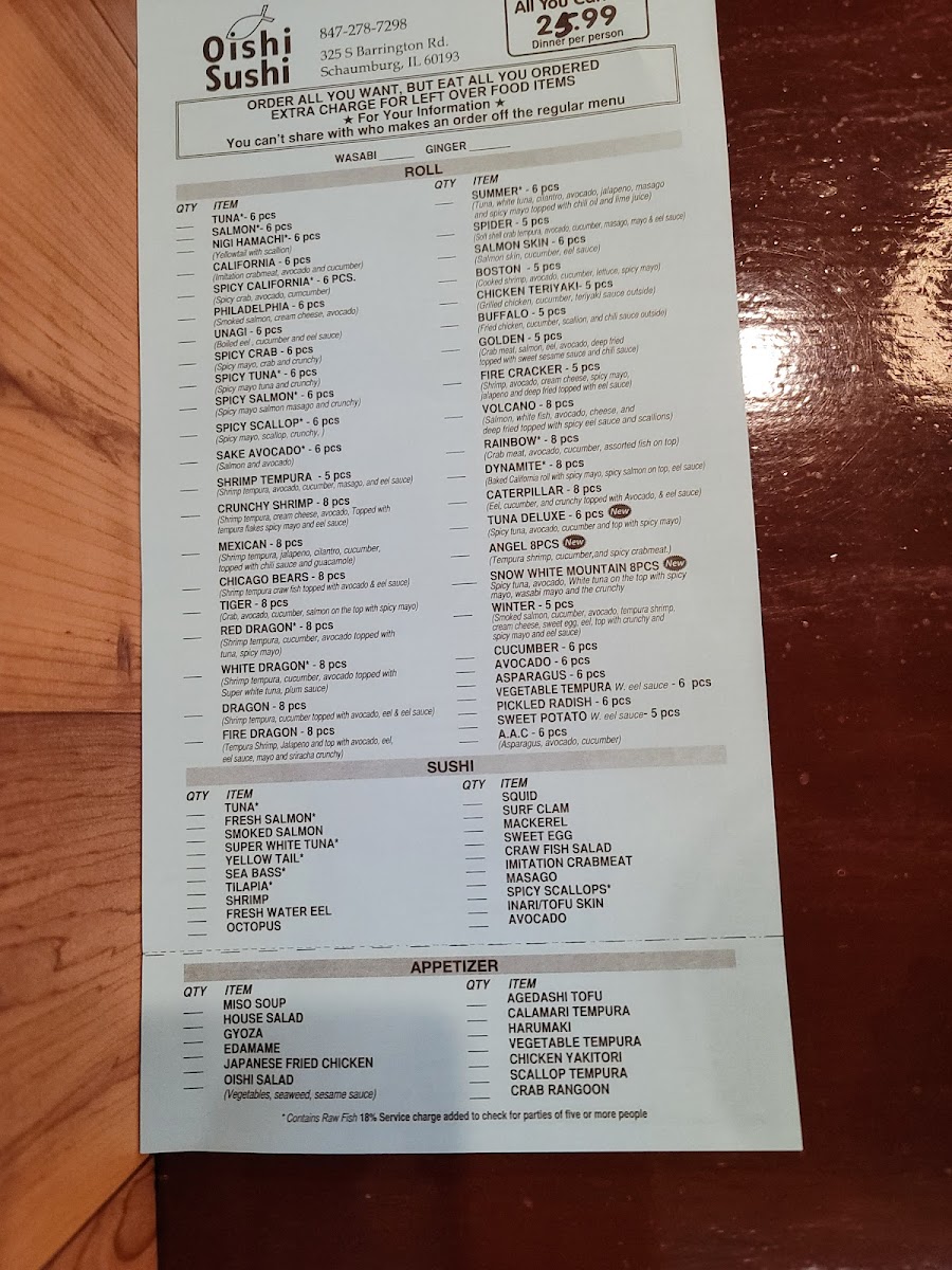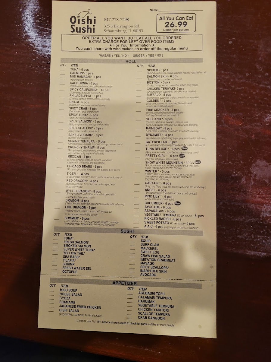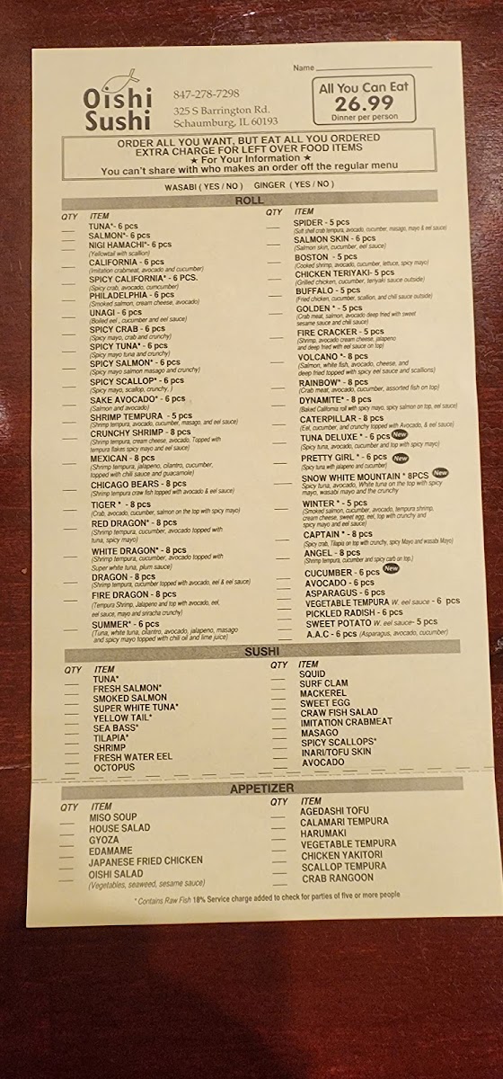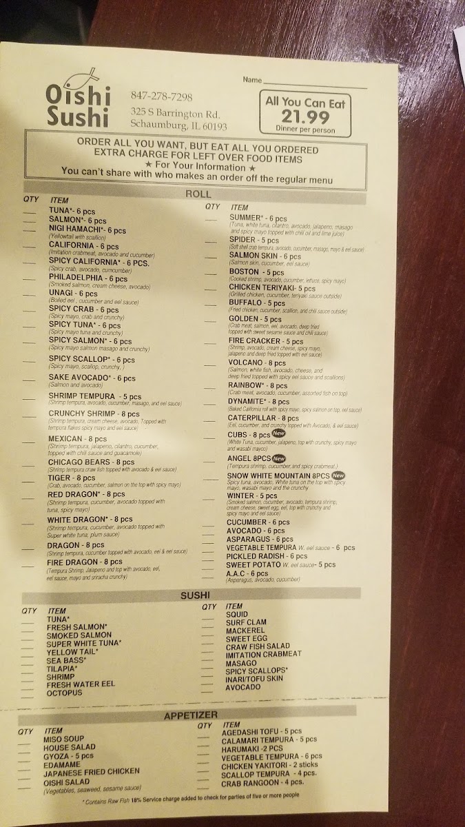 Welcome to Oishi Sushi - Schaumburg, a hidden gem located at 325 S Barrington Rd, Schaumburg, IL. This all-you-can-eat sushi spot is the ultimate destination for sushi lovers, offering a delightful variety of rolls that cater to every palate. Highlights from the menu include customer favorites like the Tiger Roll, Fire Dragon Roll, and Mexican Roll, all known for their freshness and exceptional flavor.
